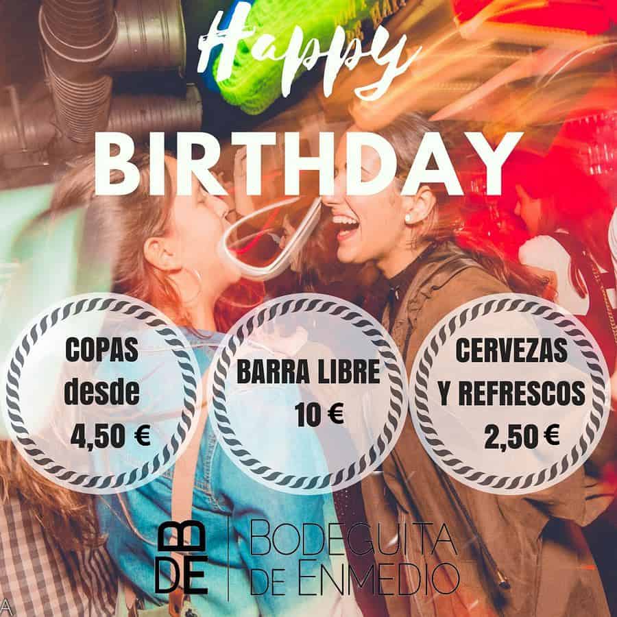 En Bodeguita de En medio ofrecemos la posibilidad de celebrar tu cumpleaños a un precio muy económico, desde una barra libre de cerveza, vino o refresco por 10€/persona hasta la opción de coger bonos de consumiciones donde te sale el doble de cerveza o la copa de vino a 2,50€
